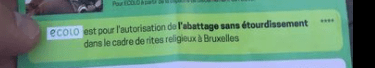 La troisième région, celle de Bruxelles, n’a pas encore pris de décision. Il faut dire que le parti ECOLO, deuxième parti de la région avec 19,1 % des voix en 2019 et une avancée de +9%, a fait campagne en ciblant la communauté musulmane, particulièrement nombreuse dans la région ; avant de la retirer sous prétexte que la décision de lancer la campagne n’avait pas été approuvée par les hautes instances du parti… mais les tracts avaient été distribués. Parmi les points du programme, on trouvait : « Ecolo est pour l’autorisation de l’abattage sans étourdissement dans le cadre de rites religieux à Bruxelles« .