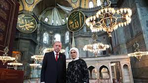 Malgré la perte des plus grandes villes de Turquie (Istanbul, Ankara, Antalya, etc.) par son parti, le président Recep Tayyip Erdogan a signé, le 10 juillet 2020, un décret transformant la basilique Sainte-Sophie d’Istanbul en mosquée. Le 24 juillet, la première prière a eu lieu en présence du président.