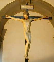En 1492, Michel Ange sculpte et peint un crucifié en bois. Ce crucifix est conservé dans l’église Santa Maria del Santo Spirito à Florence en Italie. Il est nu. Ce réalisme cru inaugure une période où Jésus est représenté comme un homme vrai, Jésus s’est incarné.