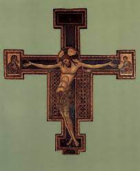 La souffrance du Crucifié va être exacerbée par Guinta Pisano, un peintre toscan de la première moitié du XIIIe siècle. Le corps du supplicié est tordu de douleur.