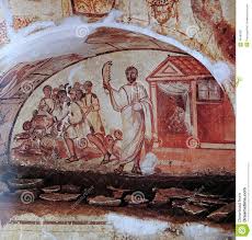 Dans les catacombes de Rome, Jésus est représenté comme un jeune homme, pasteur ou prédicateur. Rappelons que les catacombes sont des carrières abandonnées aux IIIe et IVe siècles. Elles n’ont jamais fait office de cachette pour des chrétiens « persécutés », ni de lieu de culte. Elles servaient de lieu de sépulture, les terrains en surface devenant rares et étant dévolus à la construction. Dans les catacombes on rencontre aussi bien des tombes chrétiennes, que juives et même romaines.